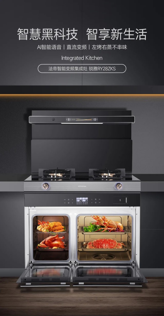 基于對健康烹飪的思考,法帝電器重磅推出年度力作——銳雅RY28系列變頻集成灶,在千家萬戶的廚房上演了『消失的油煙』,掀起了一場無煙廚房革命。