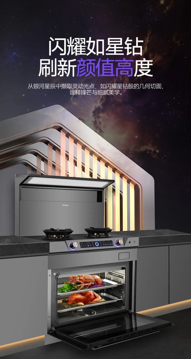 法帝星耀XL15ZK蒸烤一體集成灶,將星河與科技帶入廚房,超然顏值+硬核實力,助力打造超高能廚房!