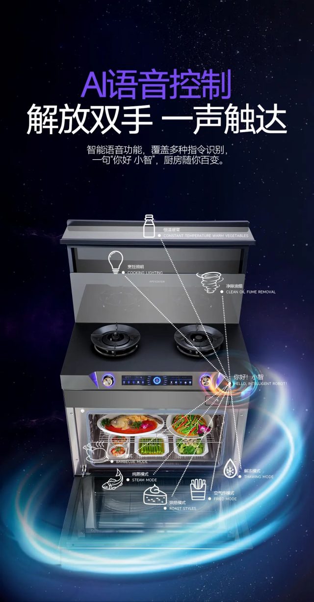 眾所周知,下廚是一件繁瑣的家務,需要忙活的步驟有許多。很多下廚人都渴望把復雜的程序簡單化,用說話的方式代替一系列的行動。而法帝星耀XL15ZK蒸烤一體集成灶,就能輕松滿足下廚偷懶的小心思。